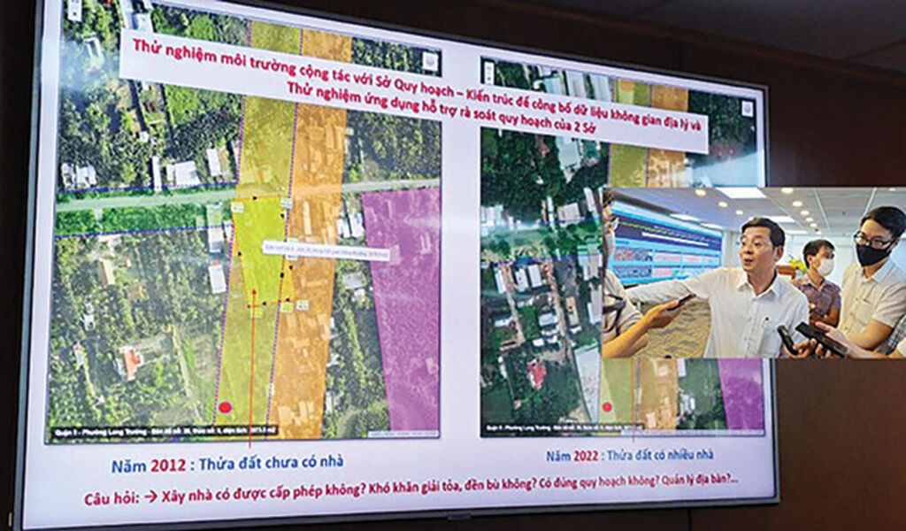| Director of the Ho Chi Minh City Department of Natural Resources and Environment gives explanations about the land data platform__Photo: https://chuyendoiso.hochiminhcity.gov.vn/ |