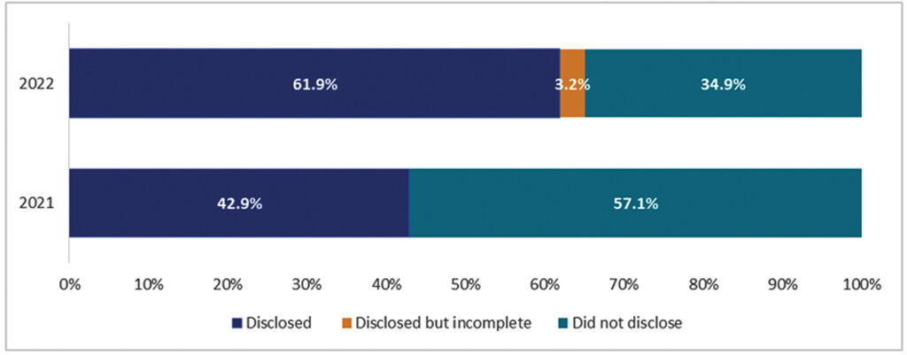 A slight increase was seen in the number of DPCs that disclosed their DLLUPs on their portals in 2022 compared to 2021 review findings