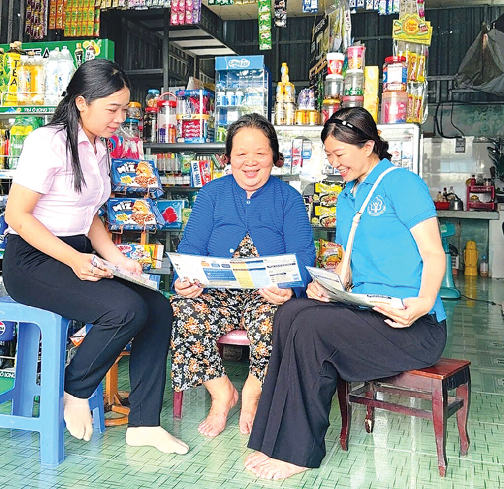 | Officials of the Social Security Office of Hau Giang province (now part of Can Tho city) disseminate insurance policies to a local resident__Photo: VNA |
