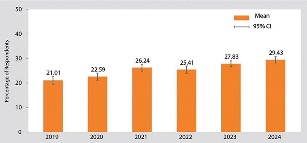 | Figure 1: Percentage of respondents with social insurance, 2019-24 |