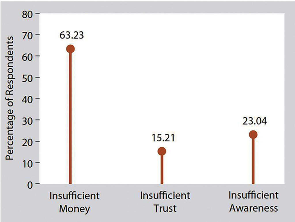 As Figure 5 shows, social insurance is one of the most prevalent forms of savings for the future among more than a quarter (29.43 percent) of the 2024 PAPI respondents. This means that a large segment of the population[6] remains exposed by this lack of a safety net. To discover why, PAPI in 2024 probed respondents’ rationale for not enrolling in voluntary social insurance. Figure 10 shows that financial constraints left the majority (63.23 percent) shut out of insurance coverage. Revealingly, 15.21 percent said they did not trust that the money would be paid out upon retirement. This is a critical finding. Lack of transparency about how money in social insurance accounts is protected and invested is a critical deterrent to its use and a major driver of early withdrawals. In addition, over one-in-five (23.04 percent) of respondents said they did not have insurance because they had insufficient awareness of the scheme and how it worked.