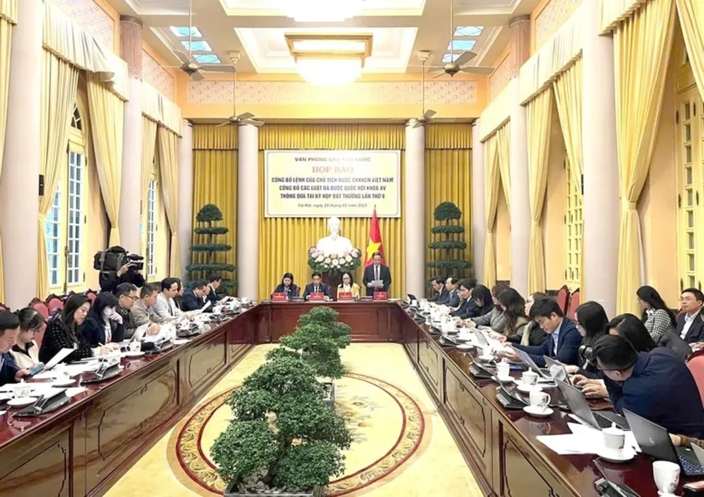 The State President’s order on the promulgation of three laws, recently passed by the 15th National Assembly (NA) during its 9th extraordinary session, was announced at a press conference in Hanoi on February 28 morning.
