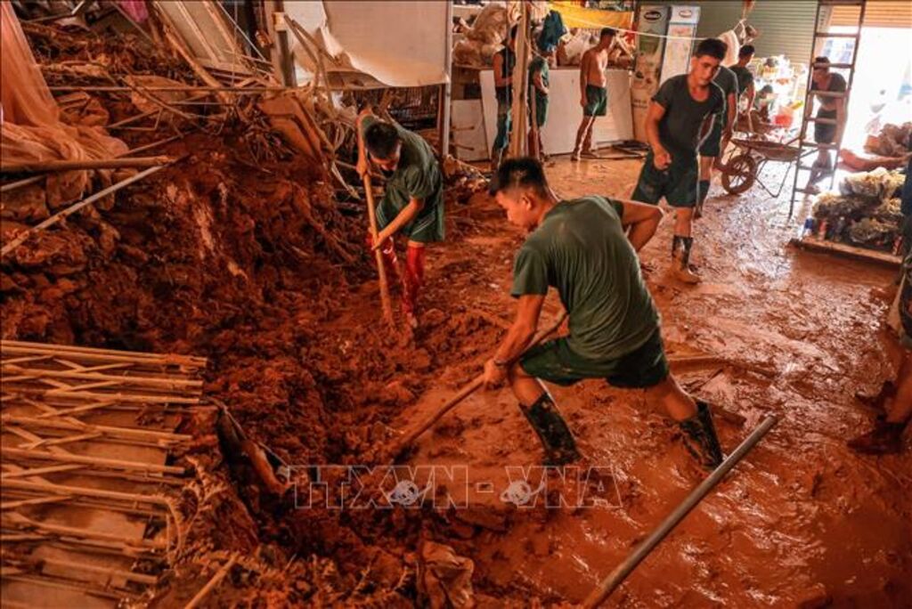 | Soldiers of Division 316 assist residents of Phuc Khanh commune, Bao Yen district (Lao Cai province) in overcoming the aftermath of heavy rains and flooding__Photo: VNA |