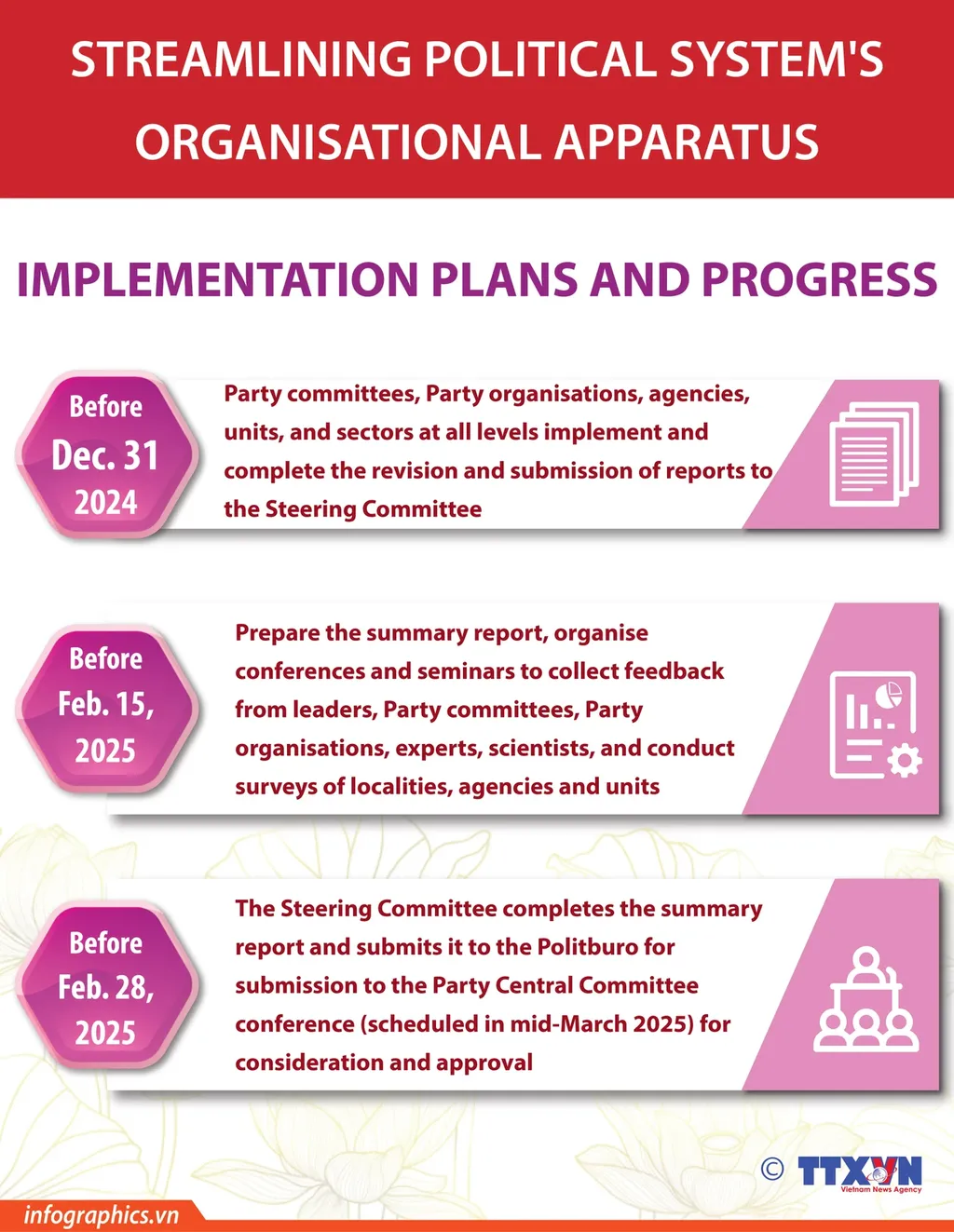 Party General Secretary To Lam has urged Party committees, Party organizations, agencies, units, and sectors at all levels to demonstrate the highest political determination in streamlining the political system's organizational apparatus.