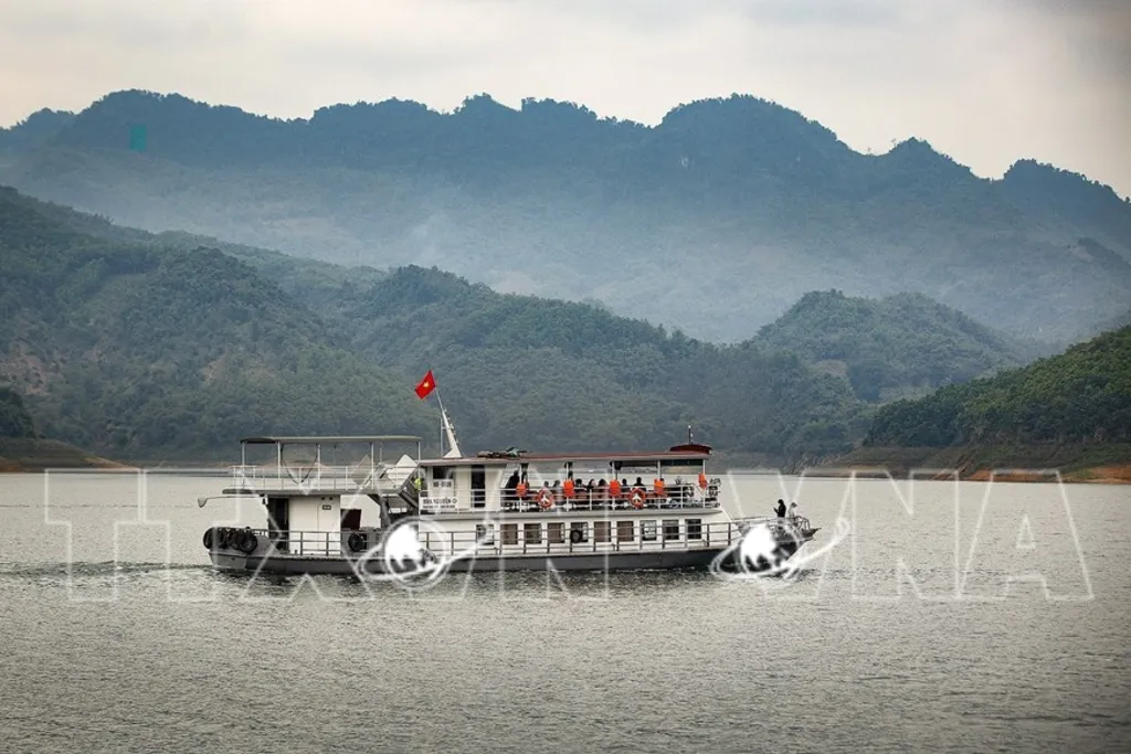 | A misty boat ride on the emerald waters of Hoa Binh Lake__Photo: VNA |