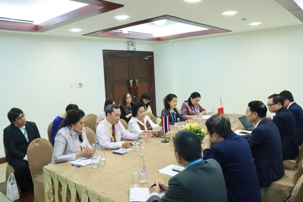 | At the meeting between Thai Minister Attached to the Prime Minister's Office Puangpet Chunlaiad and Vietnamese Minister of Information and Communications Nguyen Manh Hung.__Photo: VNA |