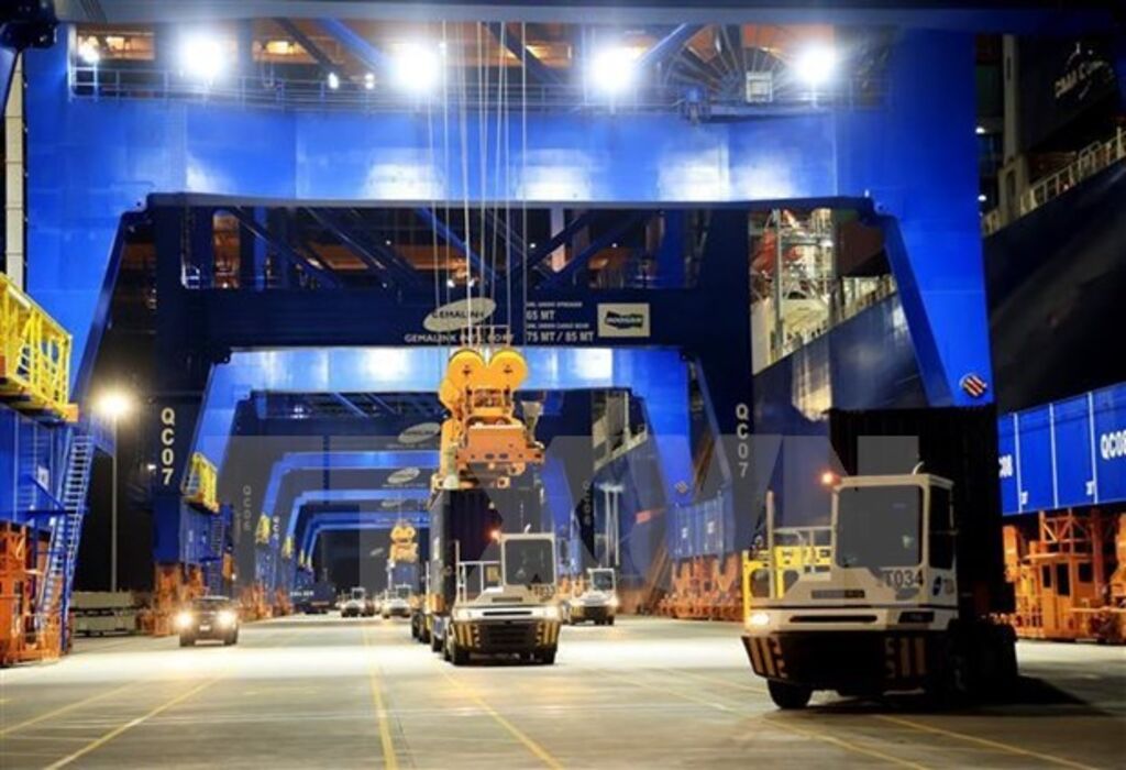 | Transporting containers at Gemalink International Port in Ba Ria - Vung Tau province__Photo: VNA |