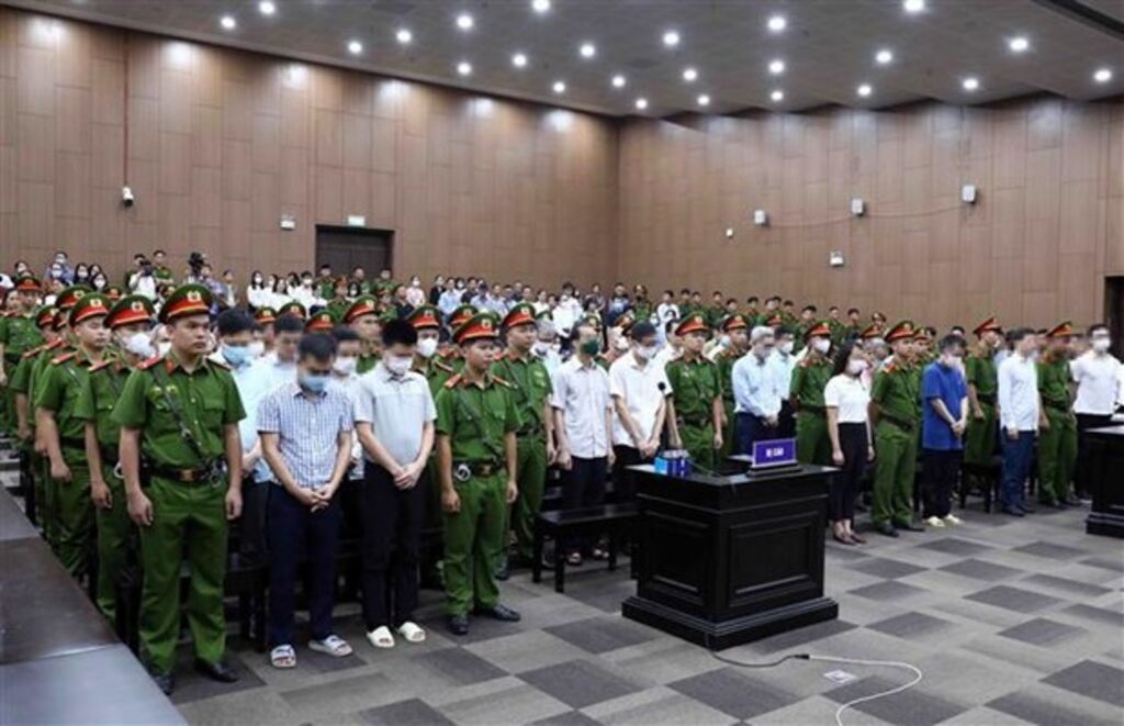 | At the first-instance trial of 54 defendants involved in the "repatriation flight" case__Photo: VNA |