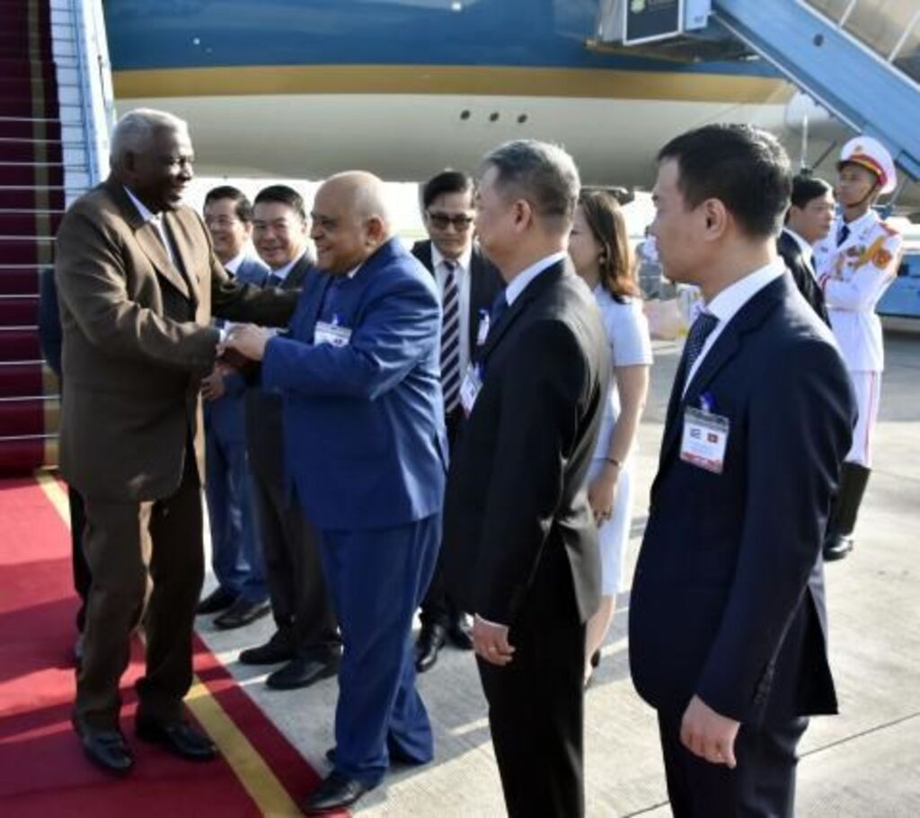 Welcoming the Cuban leader at the Noi Bai International Airport were Vice Chairman of the National Assembly Nguyen Duc Hai, Deputy Minister of Foreign Affairs Ha Kim Ngoc, Vietnamese Ambassador to Cuba Le Thanh Tung, and Cuban Ambassador to Vietnam Orlando Nicolas Hernandez Guillen.
