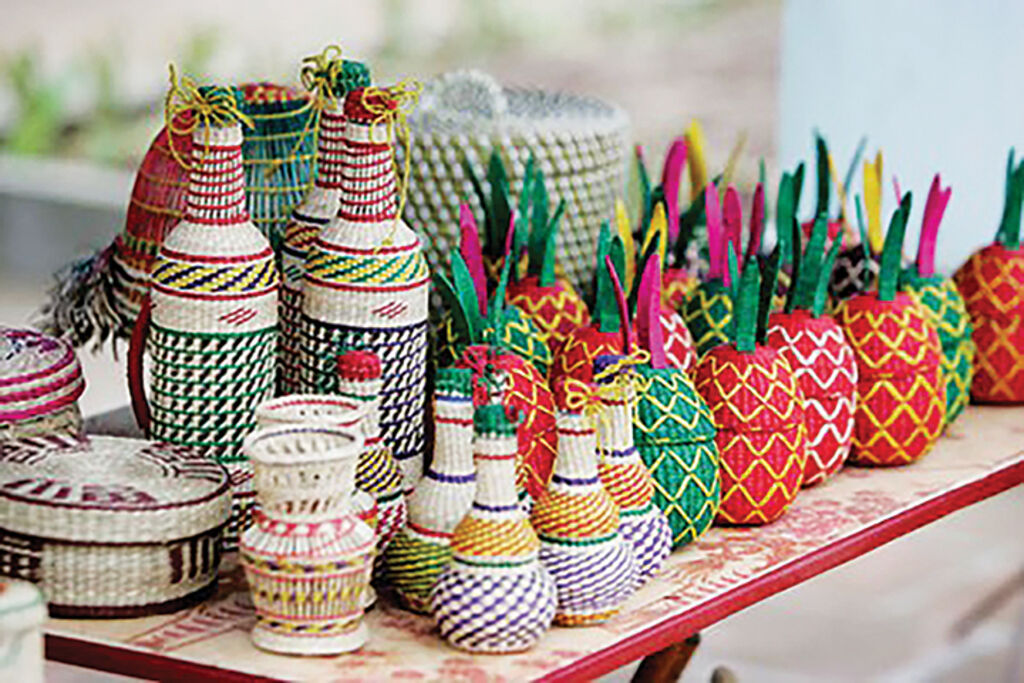 The richness of the craft is further expressed through a diverse vocabulary of weaving styles. Artisans employ wavy, rice-grain, herringbone and eyelet patterns to create bags, boxes and decorative rugs. While plain weaving offers solidity and smoothness, eyelet techniques add breathability and visual interest, and twisted weaves bring a contemporary edge, demonstrating how a centuries-old craft continues to adapt without losing its roots.