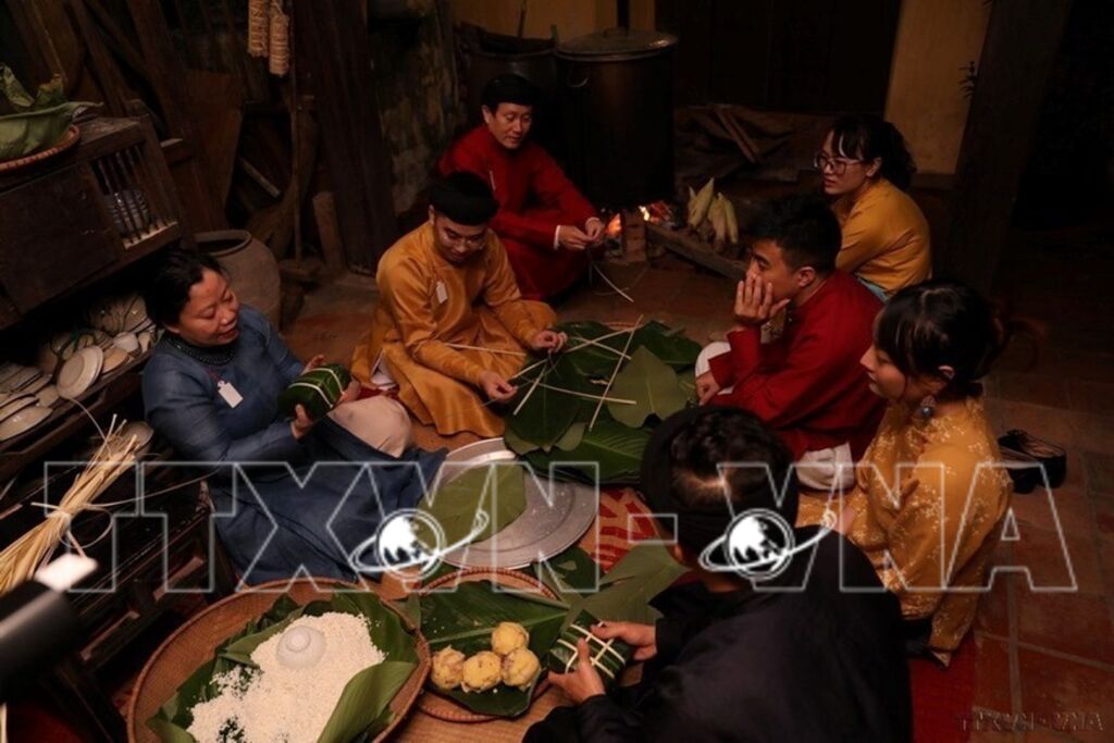 | Square glutinous rice cakes are made to celebrate the Lunar New Year.__Photo: VNA |