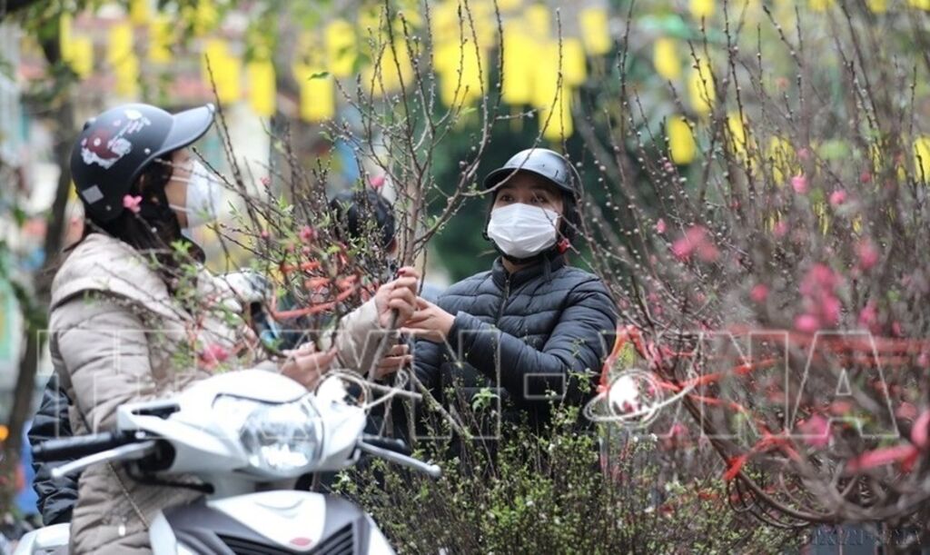 | People shop at the Hang Luoc Flower Market in Hanoi during the Lunar New Year.__Photo: VNA |