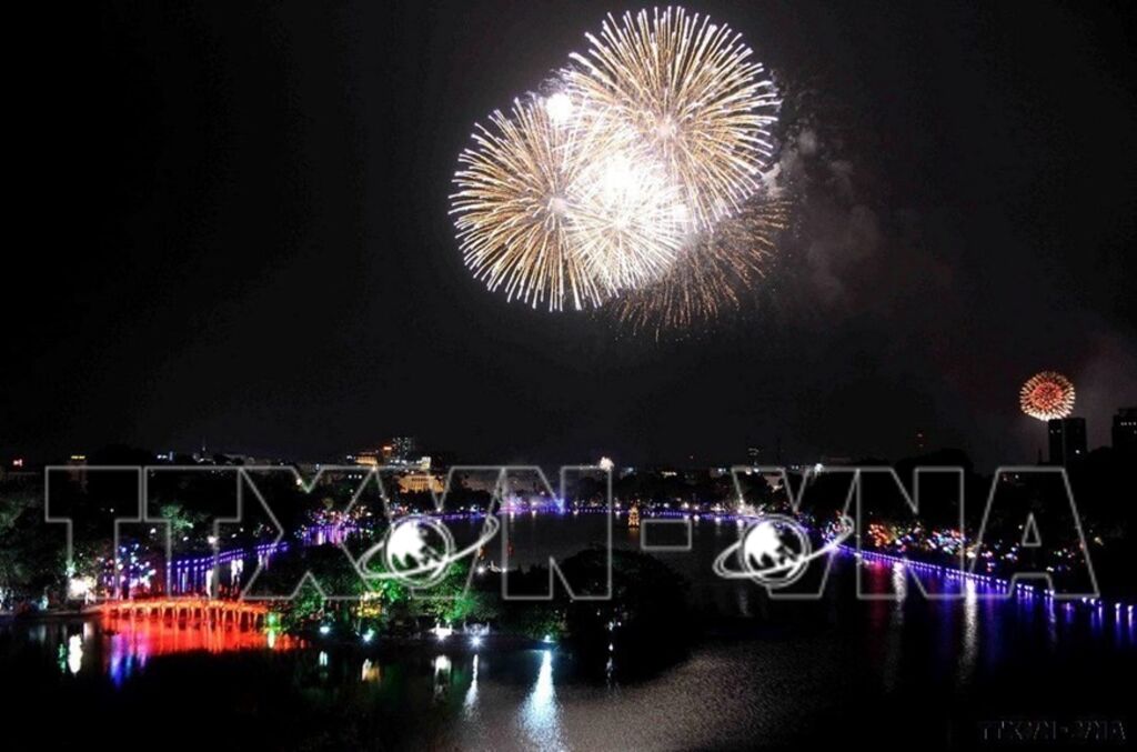 | Fireworks welcome in the Lunar New Year at the stroke of midnight at Hanoi’s Hoan Kiem Lake.__Photo: VNA |
