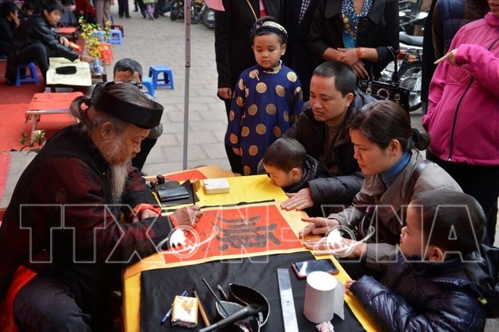 | During the Lunar New Year, many Vietnamese families visit calligraphers to seek works for good luck and prosperity, and for a peaceful and fortunate new year.__Photo: VNA |