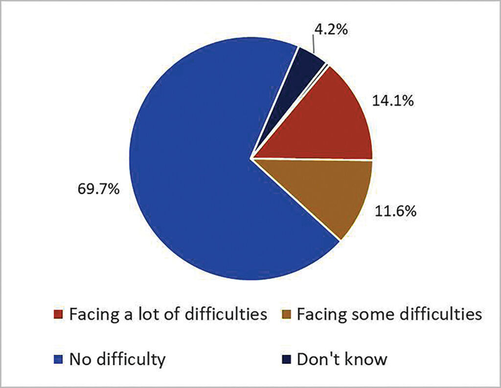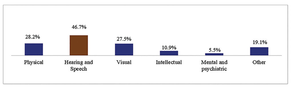 On the other hand, 25.7 percent of respondents faced significant or moderate challenges. Among them, individuals with hearing and speech disabilities reported the greatest difficulties, with 46.7 percent struggling to access these services (see Figure 2).