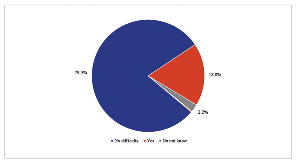 As shown in Figure 3, while 79.5 percent of respondents reported no difficulty accessing these allowances through public administrative systems, challenges persist for 18 percent, including reliance on family members, distance to local commune people’s committee offices, and accessibility issues with banking services. Many persons with disabilities, particularly those in rural areas, continue to receive allowances in cash. These hurdles reflect limited inclusion of persons with disabilities in digital transformation of both disable assistance administrative and banking services.