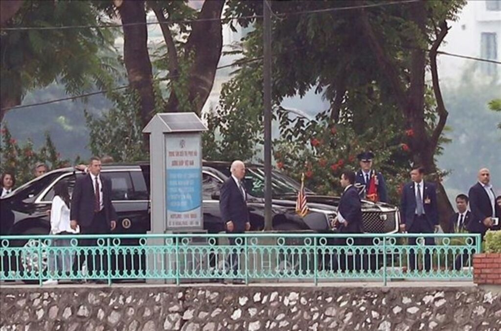 | US President Joseph Robinette Biden Jr. on his way to the monument to late US Senator John McCain next to Truc Bach Lake in Hanoi__Photo: VNA |