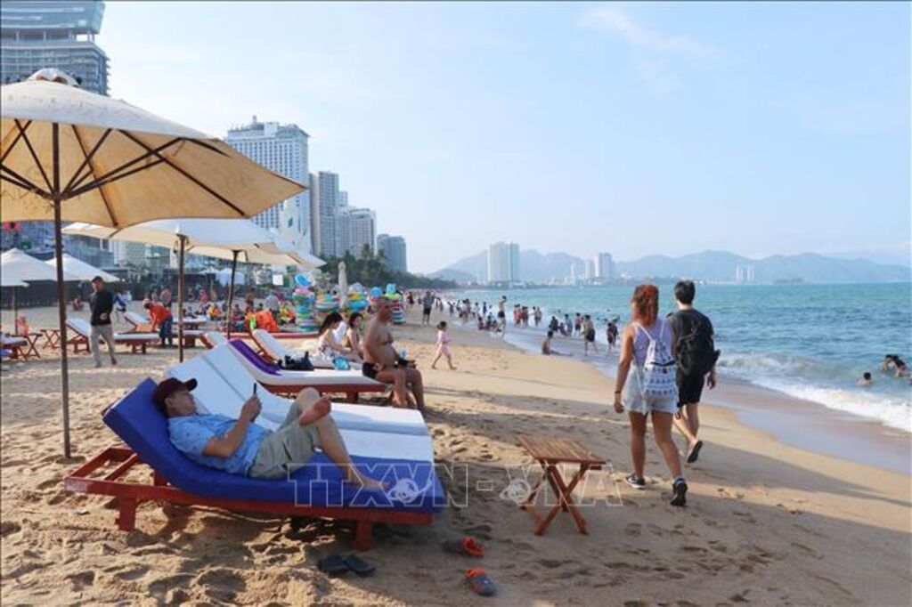 | Foreign toursits on Nha Trang beach in Khanh Hoa province__Photo: VNA |