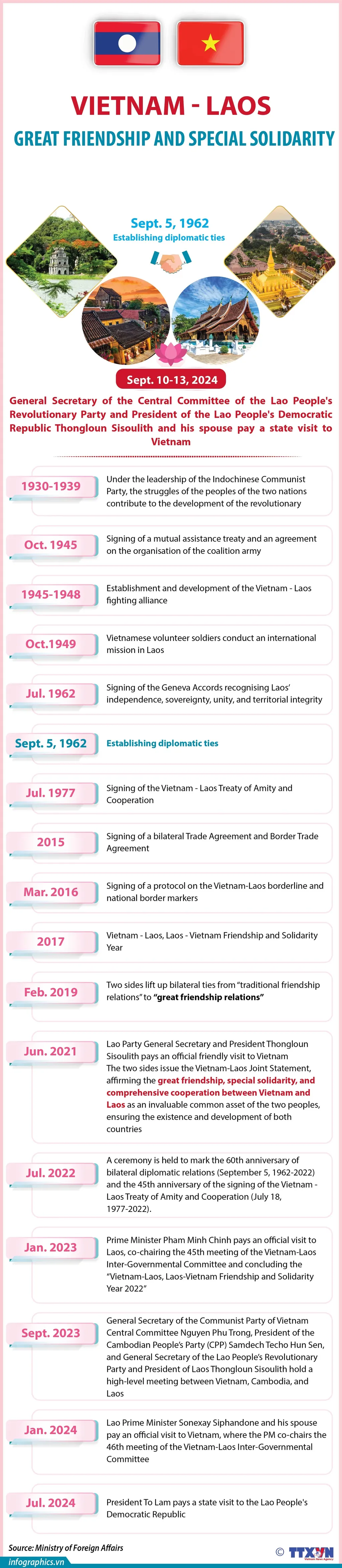 General Secretary of the Lao People's Revolutionary Party Central Committee and President of the Lao People's Democratic Republic Thongloun Sisoulith and his spouse are on a state visit to Vietnam. The visit from September 10-13 is made at the invitation of Party General Secretary and State President To Lam and his spouse.