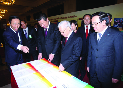 | Chinese Party General Secretary and President Xi Jinping and Vietnamese Party General Secretary Nguyen Phu Trong visit the exhibition of outcomes of the theoretical workshops between the two Communist Parties __Photo: Tri Dung/VNA |