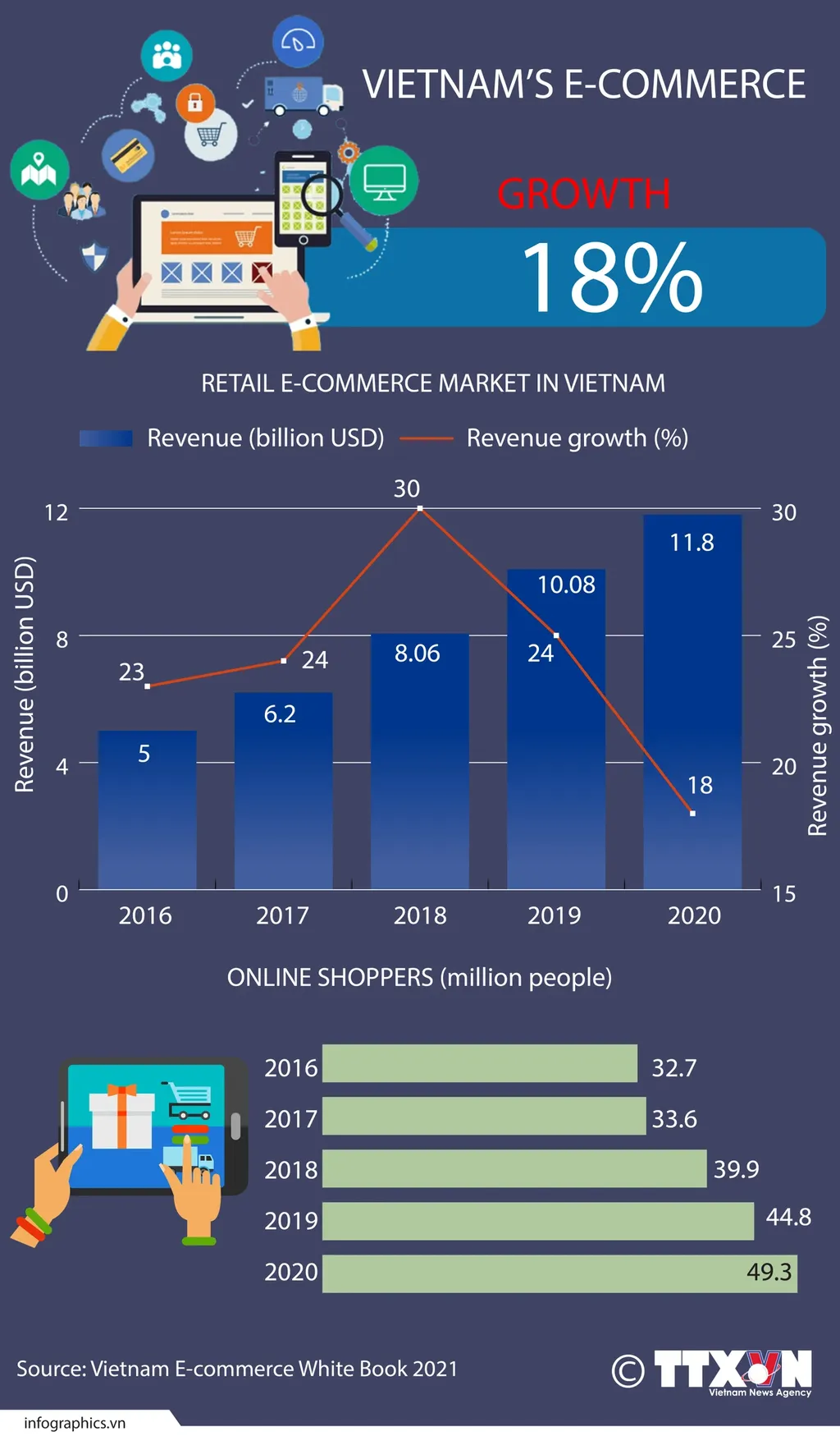 Vietnam’s e-commerce market has seen consistent growth, boasting an average annual growth rate of 16-30 percent over the past four years, the highest in the world, according to a report recently released by OpenGov Asia, a content platform dedicated to sharing ICT-related knowledge and information to better serve citizens and customers.