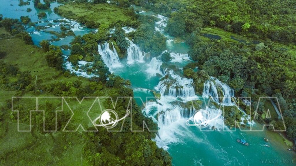 | Ban Gioc Waterfall in the northern mountainous province of Cao Bang leaves a positive impression on visitors with its mesmerizing beauty. Each cascade of water creates a frothy white spectacle__Photo: VNA |