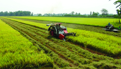 |              Harvesting 2014-2015 winter-spring rice crop in Dong Thap province__Photo: Phuc Hau/VNA  |