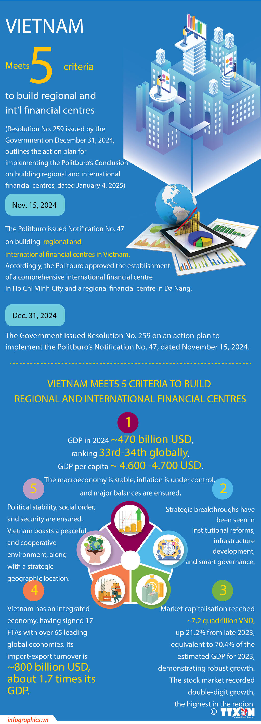 Vietnam possesses all five essential factors and conditions necessary to develop a modern financial market, paving the way for the establishment of a regional and international financial hubs.