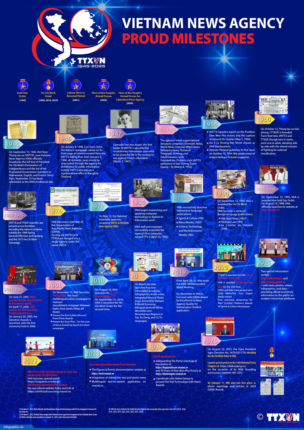 On September 15, 1945, the Vietnam News Agency - named by President Ho Chi Minh – aired the full text of the Declaration of Independence and the list of the members of the provisional Government of the Democratic Republic of Vietnam in three languages – Vietnamese, English and French.