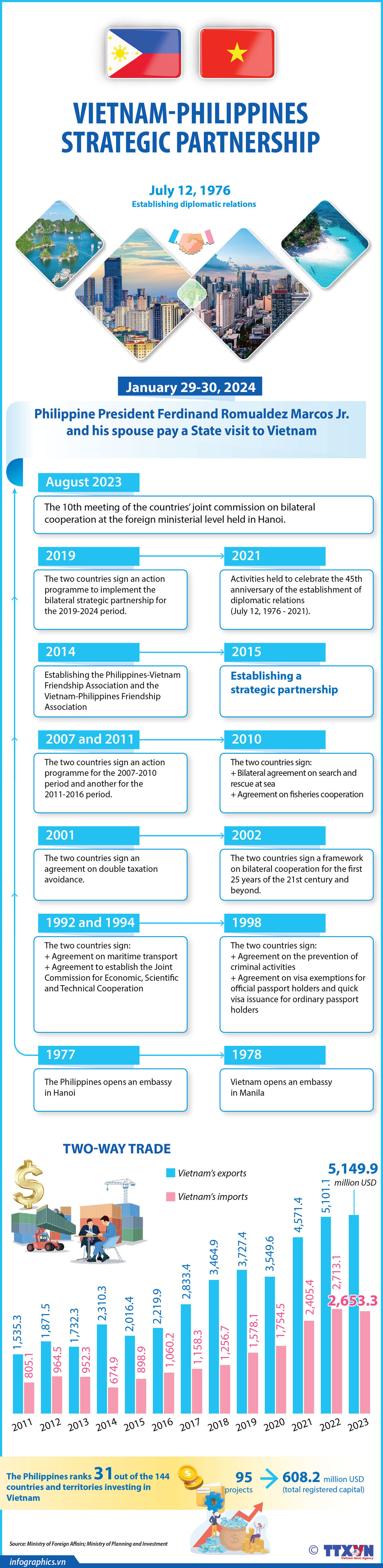 The relations between Vietnam and the Philippines have been further reinforced after the two countries established a bilateral strategic partnership in 2015.