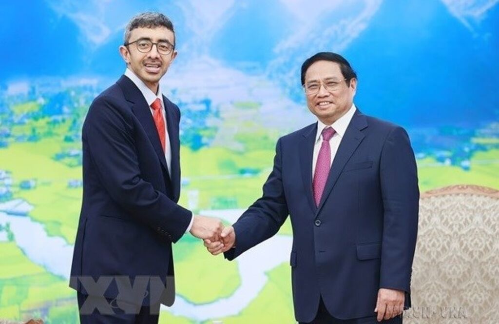 | Prime Minister Pham Minh Chinh (R) and Foreign Minister of UAE Sheikh Abdullah bin Zayed Al Nahyan__Photo: VNA |
