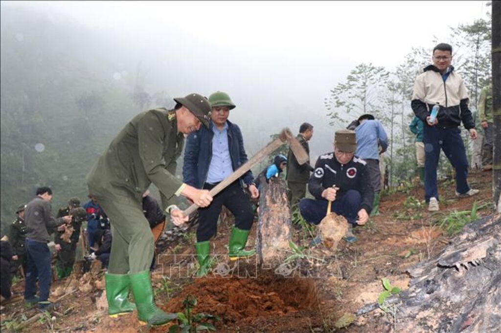 | Planting forests in Tran Yen district, Yen Bai province__Photo: VNA |