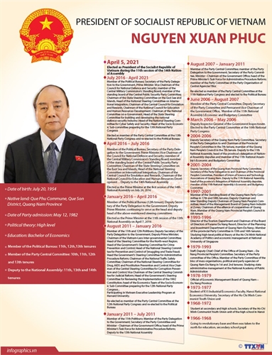 Nguyen Xuan Phuc, Politburo member in the 13th tenure and a deputy of the 14th legislature, was elected by the 14th National Assembly as State President for the 2016-2021 term on April 5 morning.