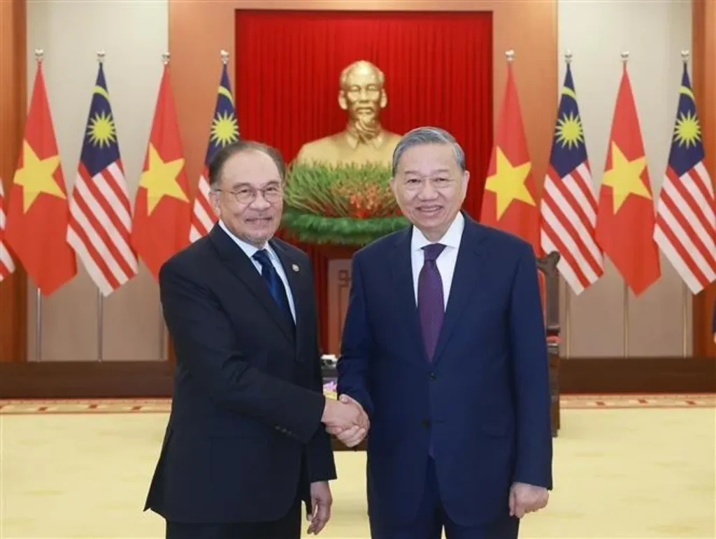 General Secretary of the Communist Party of Vietnam Central Committee To Lam hosted a reception in Hanoi on February 25 evening for Malaysian Prime Minister Anwar Ibrahim, who is in Vietnam to attend the 2nd ASEAN Future Forum (AFF) 2025.