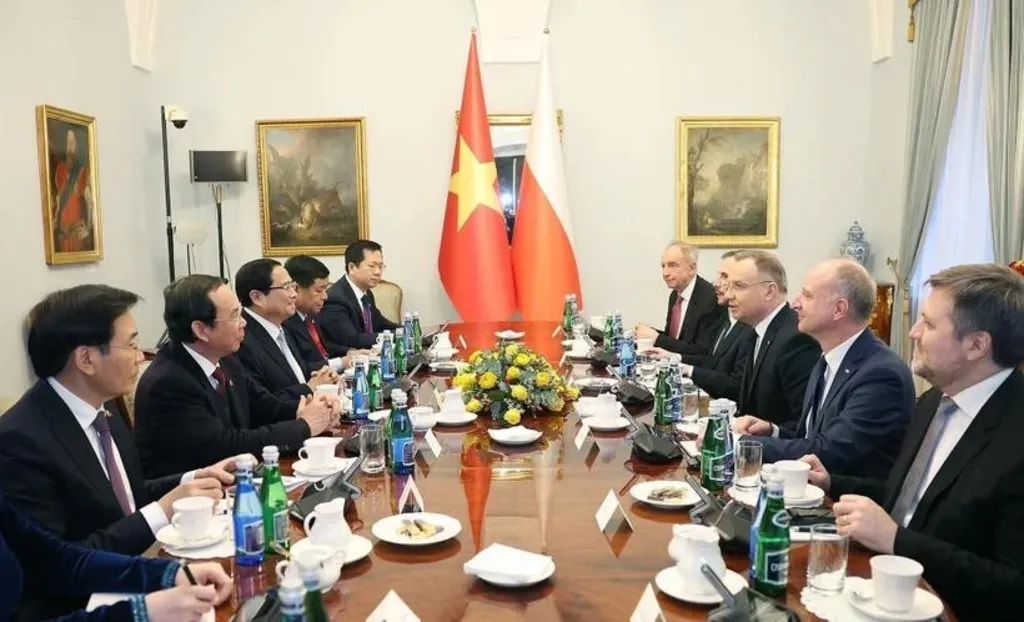 President Duda spoke highly of the official visit of PM Chinh and the high-ranking delegation of the Vietnamese Government as the two countries are celebrating the 75th founding anniversary of diplomatic relations (1950-2025). He believed that the visit to Poland by a Vietnamese PM after many years will create a turning point to further promote the Poland - Vietnam Comprehensive Partnership. The President highly evaluated Vietnam's role in the Asia-Pacific region.