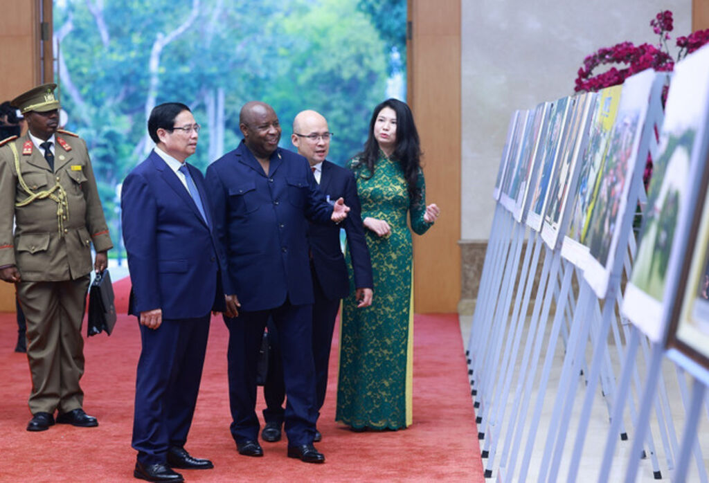 | Prime Minister Pham Minh Chinh and Burundian President Évariste Ndayishimiye visit a photo exhibition by the Vietnam News Agency__Photo: VNA |