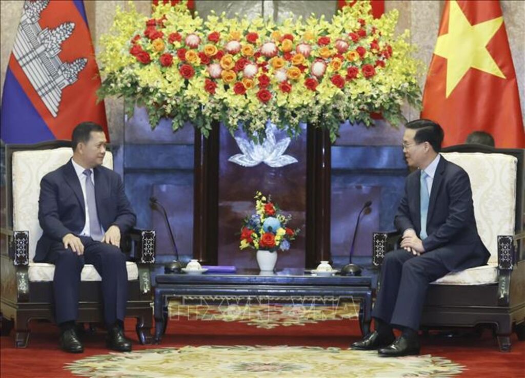 | Vietnamese President Vo Van Thuong (R) and Cambodian Prime Minister Samdech Moha Borvor Thipadei Hun Manet.__Photo: VNA |