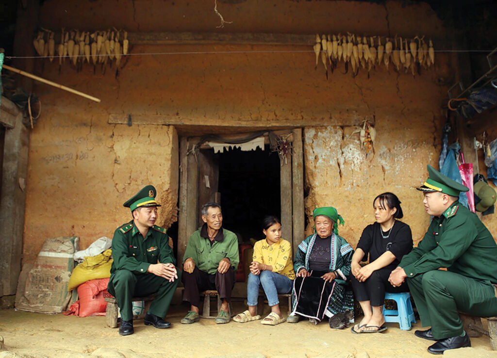 | Soldiers of Dao San border guard station in Phong Tho district, Lai Chau province, pay a visit to a local family__Photo: Quy Trung/VNA |
